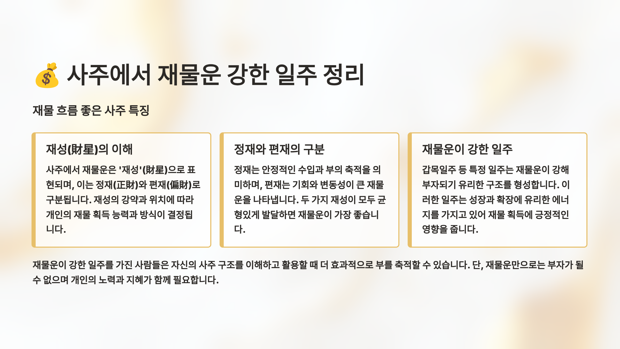 💰 사주에서 재물운 강한 일주 정리|재물 흐름 좋은 사주 특징