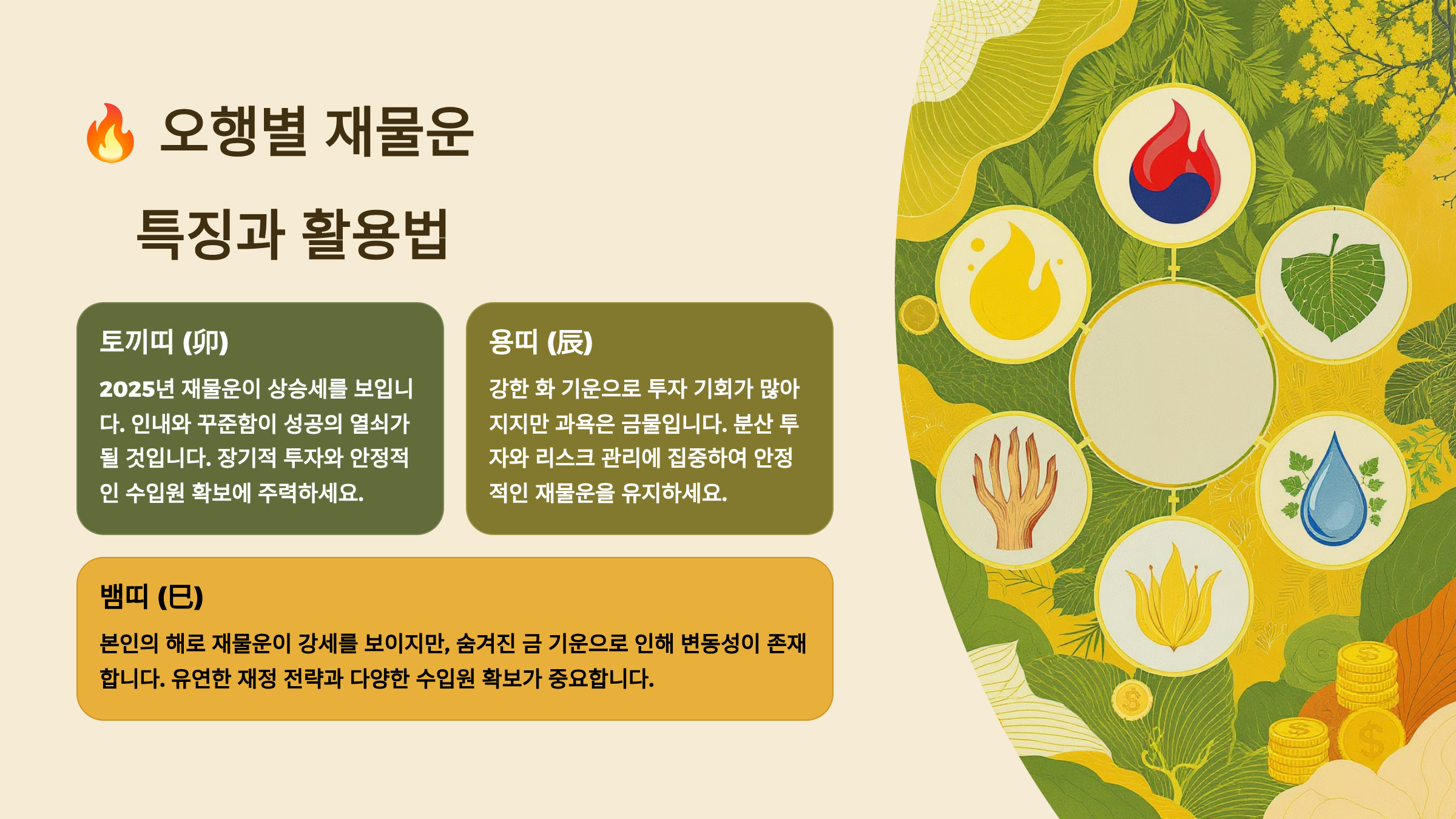 🌟 오행별 2025년 재물운 활용 전략