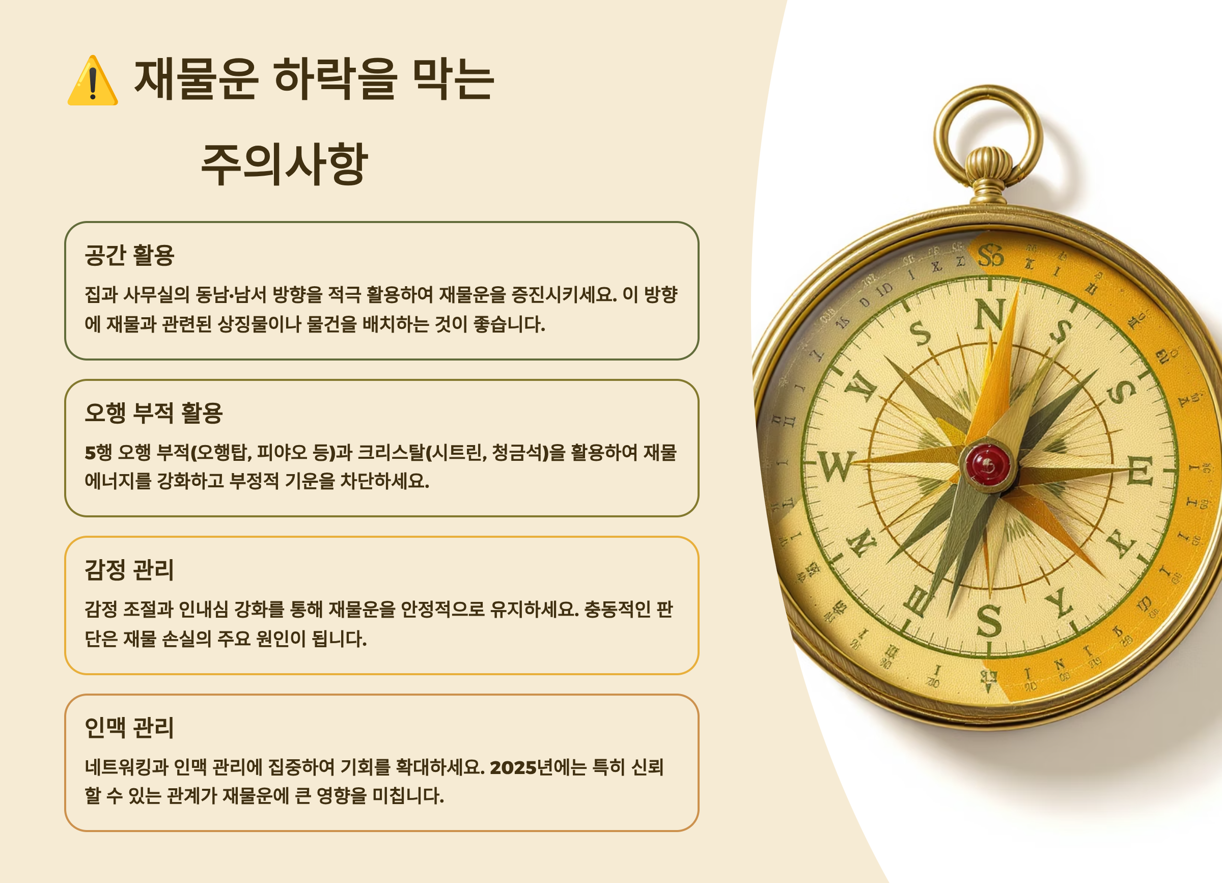 ⚠️ 재물운 하락을 막는 주의사항
